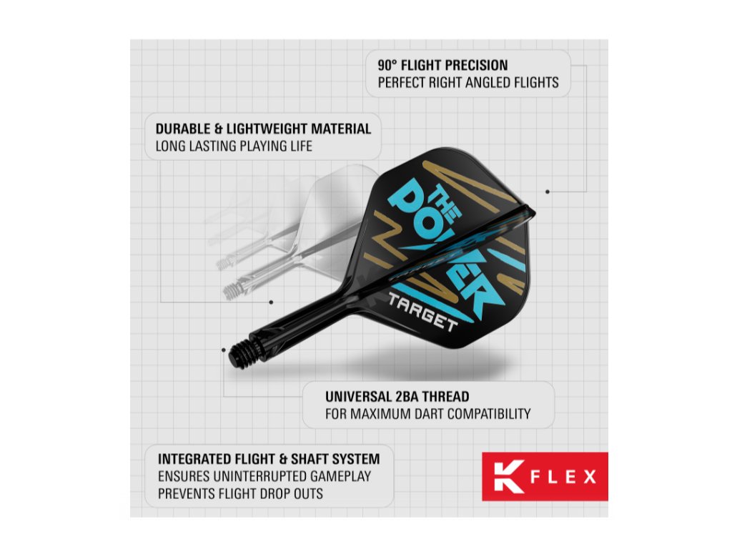 Zahrajte si jako legenda šipkového světa Phil Taylor – šestnáctinásobný mistr světa! Tento exkluzivní K-Flex systém byl navržen na počest „The Power“ Phila Taylora a pyšní se ikonickým bleskovým designem v elegantní modro-zlaté kombinaci – důstojná pocta jednomu z největších hráčů historie.
