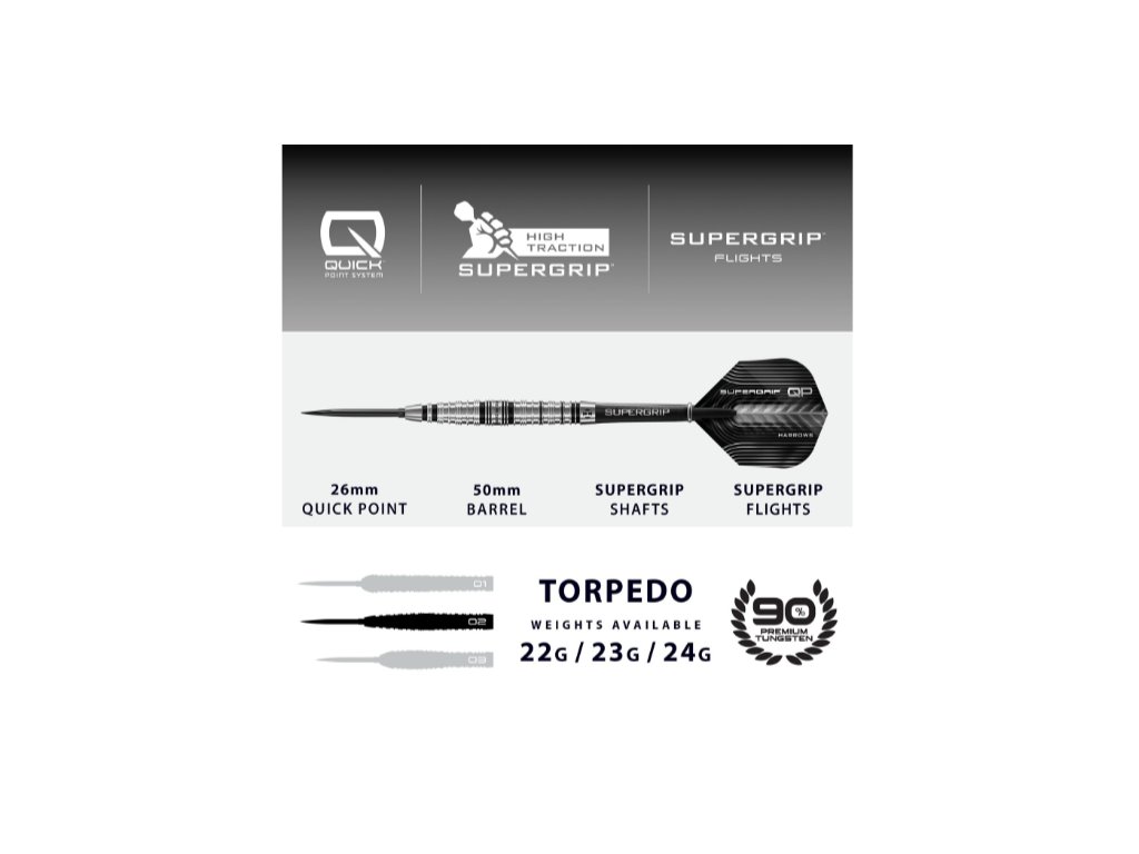 Harrows Supergrip Torpedo QP 22g – profesionální šipky s výměnnými hroty