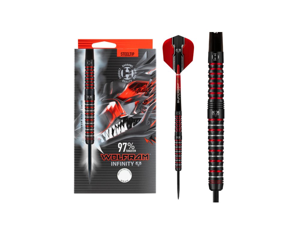 Představujeme novou generaci oceňovaných šipek Harrows Wolfram 97 %, nyní v inovovaném provedení Wolfram Infinity R. Tyto šipky s ultra štíhlým tělem, vyrobeným pomocí precizního vstřikování 97% wolframu, patří mezi špičku ve své třídě – jak svým zpracováním, tak výkonem.