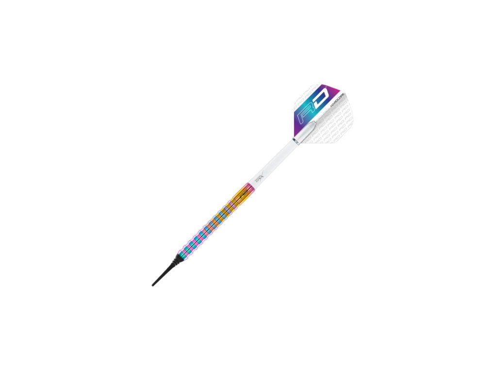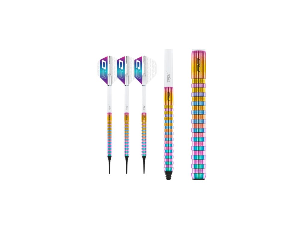 Barel vyniká agresivním, ostrým gripem, který poskytuje výjimečnou přilnavost a stabilitu v prstech. Díky tomu se hráč může spolehnout na konzistentní a přesné odhody, a to i při delších herních seancích. Povrchová úprava v efektní duhové barvě (rainbow PVD coating) dodává šipkám nejen jedinečný vzhled, ale také moderní a profesionální styl.