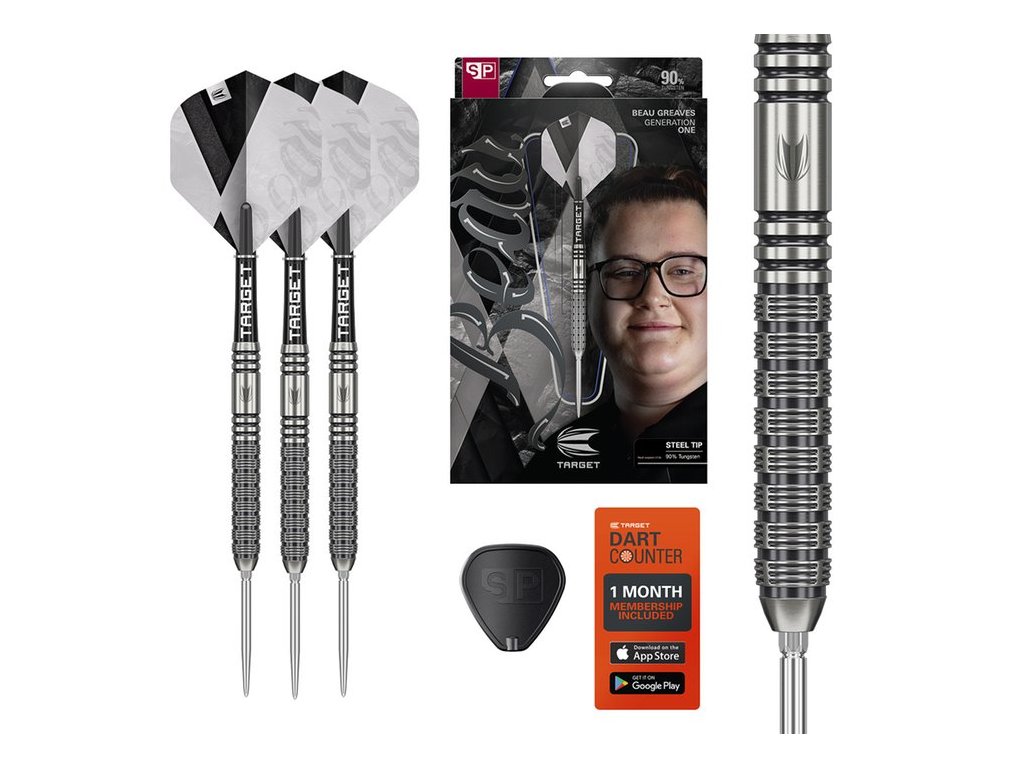 Target Beau Greaves Generation 1 23g jsou prémiové profesionální šipky, které vznikly ve spolupráci s jednou z největších hvězd současného ženského dartsu – Beau Greaves. Tato mimořádná hráčka je vítězkou WDF Mistrovství světa 2024 a držitelkou rekordního počtu titulů z PDC Women’s Series, Matchplay a Challenge Tour. Tyto turnajové šipky přesně vystihují její klidný, technicky dokonalý a sebevědomý styl hry, díky kterému patří mezi absolutní elitu světového dartsu.