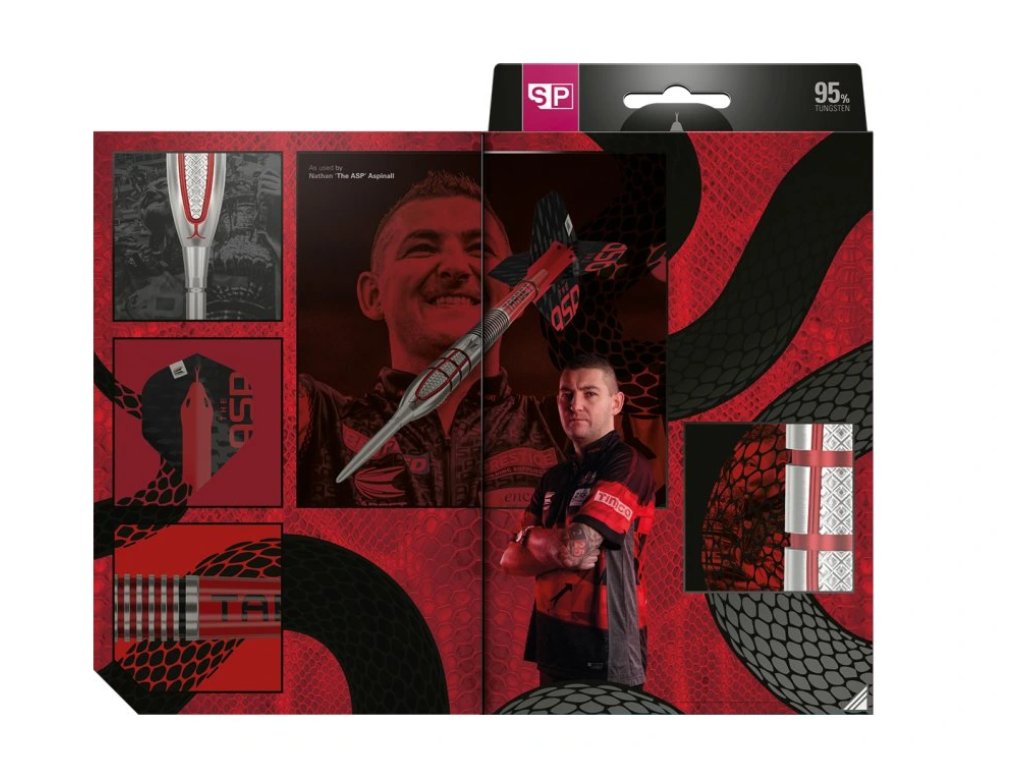 Šipka navržená ve spolupráci s Nathanem Aspinallem, pro zlepšení jeho výkonu a přesnosti na jeho plánované cestě k tomu, aby se stal v roce 2023 mistrem světa PDC. Dominantní 95% wolframový barel s unikátním designem se souhlasem „The Asp“ vytváří perfektní rovnováhu s několika úchopy po délce barelu, aby vyhovoval stylu Aspinallova hodu. Sada šipek je doplněna o 26mm hroty Swiss Storm Points, násadkami Pro Grip, letkami G2 Asp a Swiss Point klíčkem na hroty.