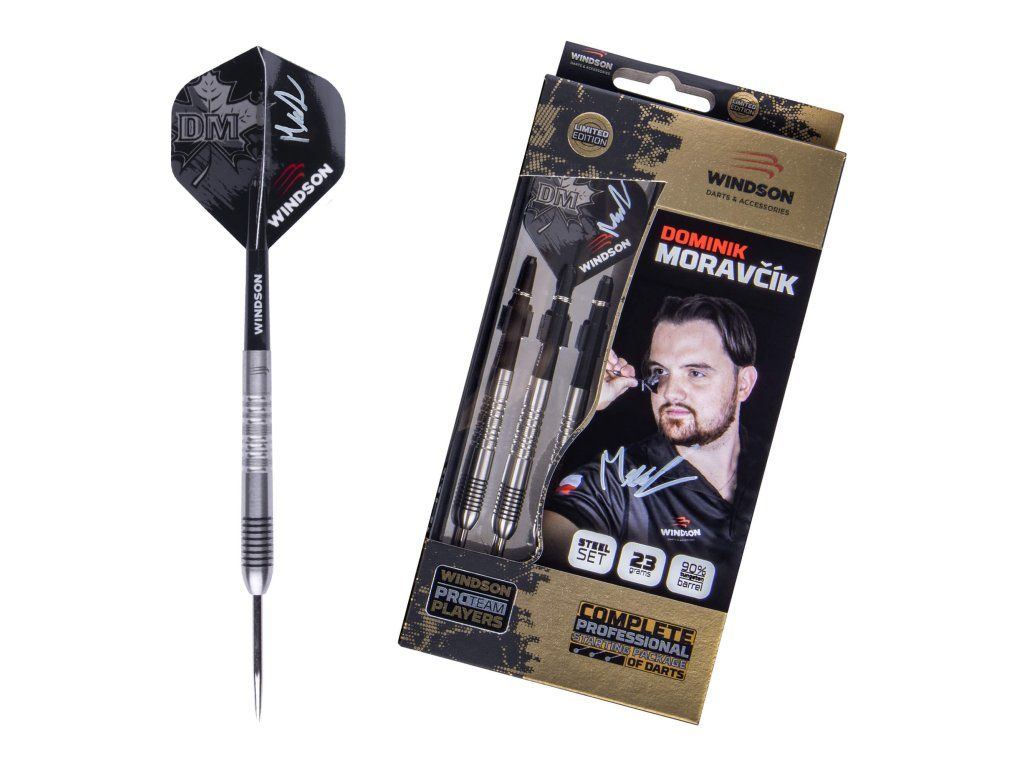 Šipky Windson českého hráče Dominika Moravčíka, 90 % wolfram, 23 g, steel
