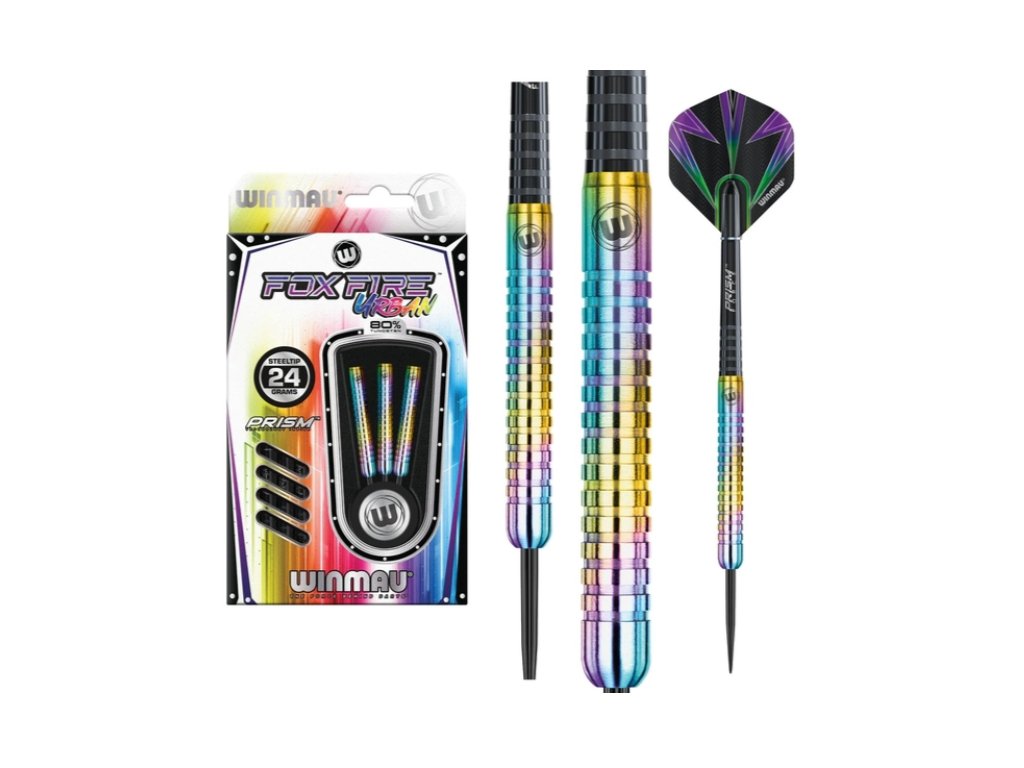 Řada Foxfire s barely z 80 % wolframu nabízí skvělý produkt s vysokou hmotností a nízkým objemem. Zaručená kvalita přináší šipky na vysoké úrovni. Rovný barel v duhových barvách má neostrý grip. V zadní části je doplněn logem Winmau.