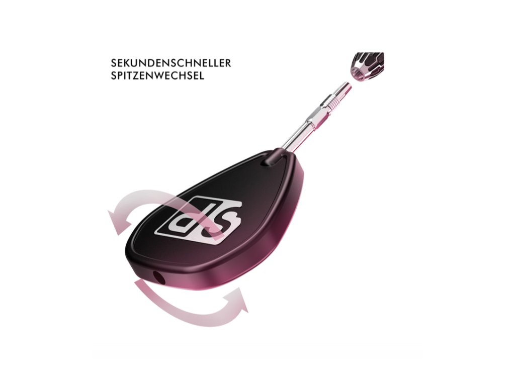 Moderní systém Swiss Point od značky Target umožňuje rychlou a snadnou výměnu hrotů. Kapesní šroubovák Swiss Point slouží k výměně během několika vteřin. Díky patentovanému uzamykacímu mechanismu zůstávají hroty pevně zajištěné a během hry se neuvolňují.